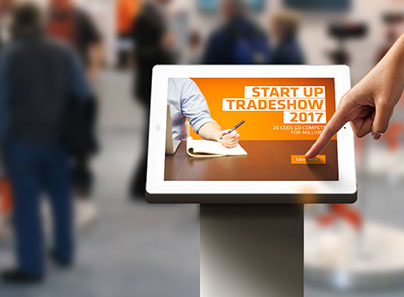 How you design your presentation will depend on the exact use of the kiosk. Whether the goal is to engage or to entertain, you want eyes on your kiosk, and your design will be the best way to accomplish your goal. If you’re at a tradeshow or conference, you will want to create a front page screen that will get attention and draw people in. Maybe it’s a video, an exciting statistic, or an enticing value proposition of your company’s product or offering.