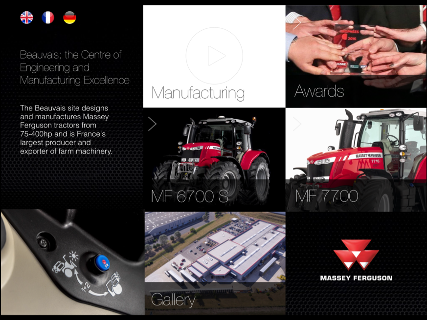 Massey Ferguson’s presentation contains extensive content and interactivity including: